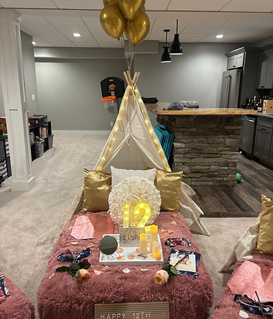 If you do not see a theme that you are head over heals for, then we are willing to work with our clients to customize your party. If you can imagine it then we can create it . Requested colors, decorations, and themes are available upon request. There would be an additional $35 fee per tent to be added onto the final cost. In addition, we will need at least 3 weeks to prepare for customized party supplies in order to ensure inventory will be ready in time for your event.