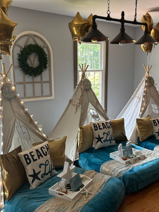 If you do not see a theme that you are head over heals for, then we are willing to work with our clients to customize your party. If you can imagine it then we can create it . Requested colors, decorations, and themes are available upon request. There would be an additional $35 fee per tent to be added onto the final cost. In addition, we will need at least 3 weeks to prepare for customized party supplies in order to ensure inventory will be ready in time for your event.